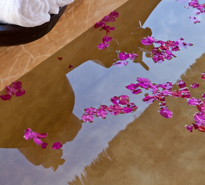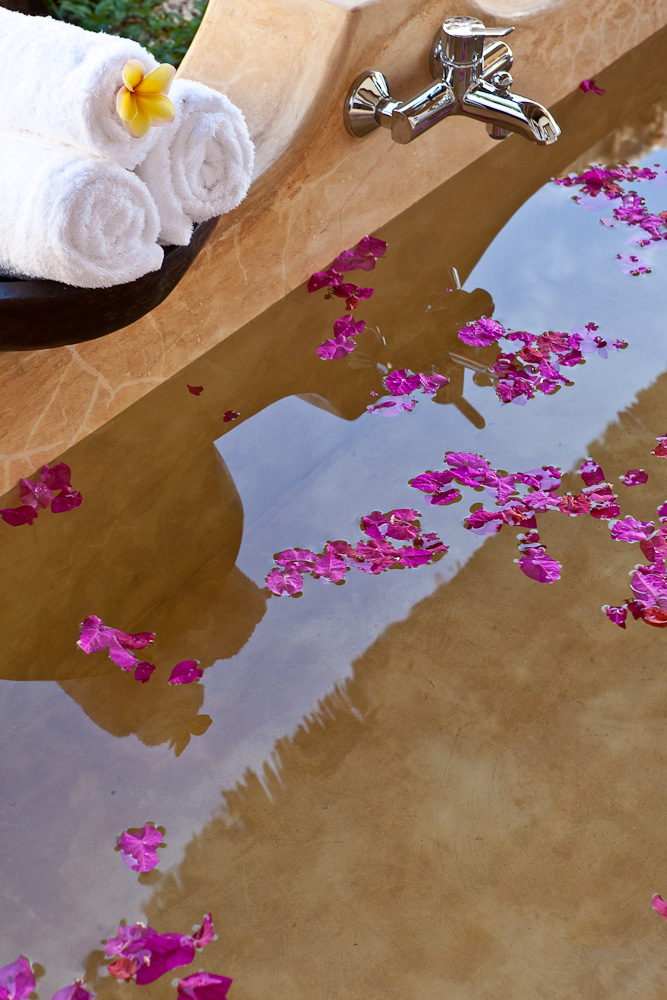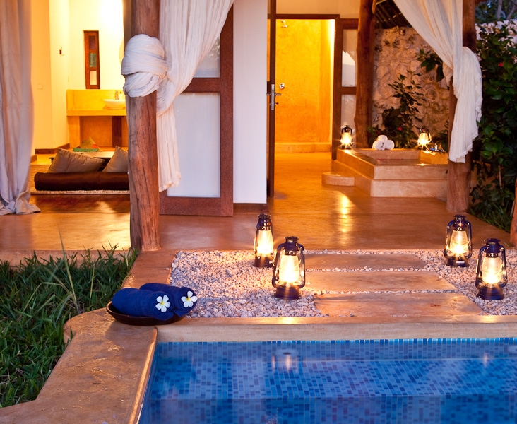 Ogni Villa è costituita da giardino con mini-piscina privata e vasca relax esterna e patio coperto per poter sorseggiare un drink nella massima privacy.