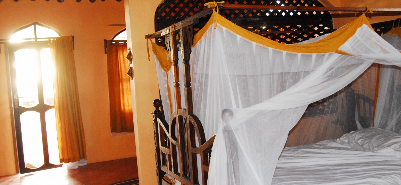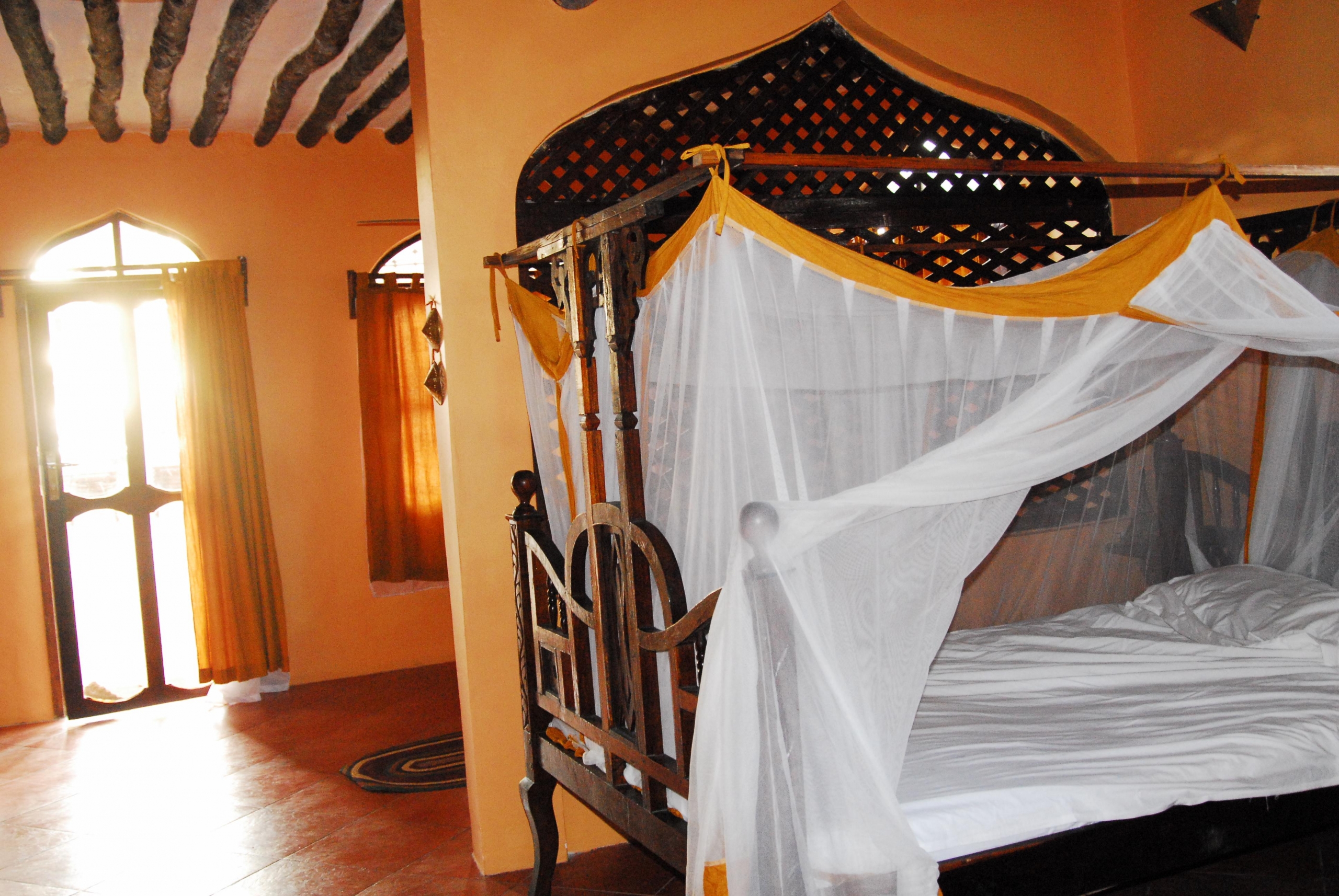 2 camere Suite familiari. Di esse la piu’ sontuosa e’ la Maharaja Suite, in posizione centrale e al piano superiore, di circa 80mq, composta da ampio salone, terrazzo con tavolo e sedie ristorante, sofà, frigo bar, grande sala da bagno con doppio lavabo e doppia doccia.Tutte le camere possiedono un doppio ventilatore, che sostituisce l’aria condizionata, secondo una scelta ecologica di risparmio energetico e di riduzione di emissione gas serra.Per gli ospiti della Maharaja suite è riservato un trattamento speciale che include il trasferimento privato da e per l’aeroporto di Zanzibar, pranzi e cene serviti sul terrazzo della camera con cameriere privato, cena a lume di candela a base di crostacei.